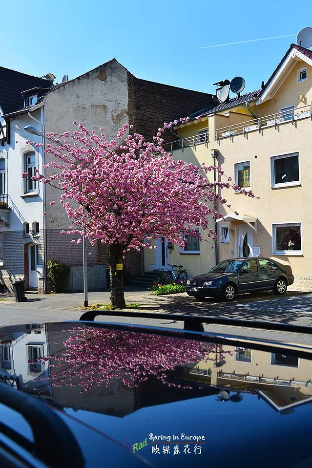 一周前已经来波恩小住,看到樱花尚未盛开提醒我们改变行程的好友,就这样在街头偶遇,事先没有电话微信沟通,那么巧合同一时间在这棵樱花树下相会!