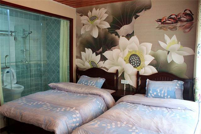 由于客栈是处于沱江下游,在“雾桥”附近。环境是比较安静的,河对面就是山林树木。客栈虽说是处于下游,但是步行到虹桥也不过10来分钟,古镇也不大,住这里性价比比较高。床是那种木头四柱床,很有特色,而且很多房间的阳台都有木制的大秋千!卫生条件也不错,床铺没有异味。这里出门就是沱江,每天早上就能看到农家小船缓缓划过,晚上可以坐在客栈小书吧里喝点小酒,听老板弹吉他,打打鼓。