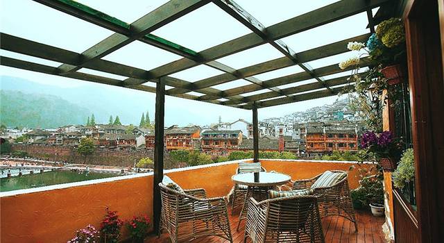 客栈所在的街道位于沱江下游,不像上游没有那么多的酒吧,比较清静,睡眠质量会很好。客栈直面沱江,这一带背靠南华山,风景绝佳,夜晚会有谷风自沱江江面而来,非常舒服。在游客不多的日子里,确实是洗涤心灵的清净之所。晚上的夜景虽然不似上中游那么热闹繁华,但是也有种返璞归真的味道。老板娘是漂亮的苗族姑娘,热情周到。卫生条件也很好。