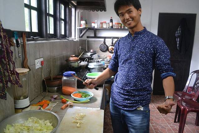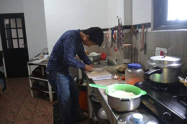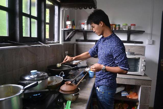 虽然我们住的这个山景房很潮湿、交通很不便、位置很偏僻,但是这里有个小厨房。经和房东太太协商后,允许我们在这里做饭。