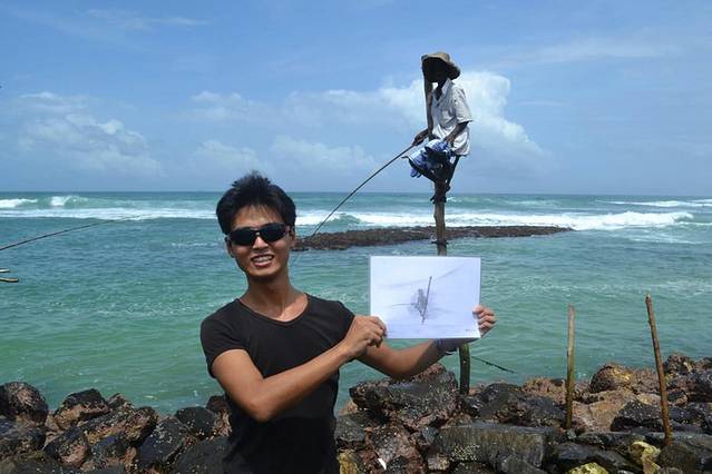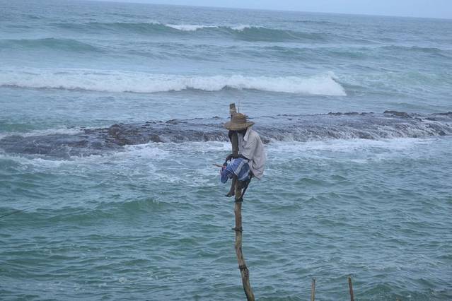 高跷钓鱼在美蕊莎和加勒的中间,我们租了五辆自行车一路向北,途中问了几个热心的斯国人不用纠正方向就一条路走的那个畅快。(顺便多句嘴,马来西亚和斯里兰卡依旧顺行靠左行驶,前四个国家都能看到凤毛麟角的中国人自驾游.马来和斯国完全看不到中国的车牌了)骑了大约一小时就看到慕名已久的高跷钓鱼了,本来是很高大上的独门绝技,不知几何时沦落取悦游客观赏性工具,拍照和体验都收费,弹性收费可还价。