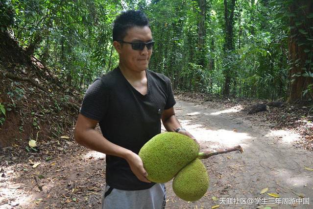 门票650卢币/人,合人民币才30多元,虽然里面的景色一般般但菠萝蜜真是多的数不胜数,刚走一百米就看到一棵大菠萝蜜树。对于吃货来说怎么可能放弃,在我们几个眼神的交流下,阿鹏就奋勇当先,蹭蹭蹭上树,不用说,菠萝蜜也是我们囊中之物