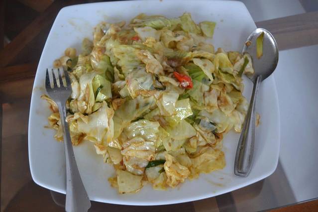 尼干布住宿贵,相应的周边吃饭也不便宜,普通一份蛋炒饭或沙拉都要五六百卢币以上,合人民币30元以上,这才是仅仅一份饭而已。如果我们吃一顿的话,那能吃多少椰子啊,小十在一旁掰着手指头默默核算着…