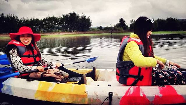 聪明的我就走了一个纯玩团去拉市海划船、茶马古道骑马方便实惠才一百一人还包来回、爽!