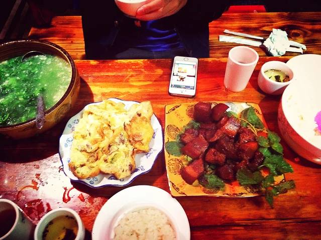 朋友狂开回到客栈直接睡到六点半爬起吃晚饭、把车退了、就过去找吃的