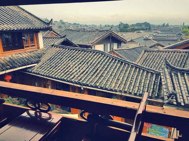 我们了是事先定了古城门口的客栈、就是总站退后两个站就是我要住的《倾城别院》客栈有三层楼、天台很有意思、不过下雨没上去享受