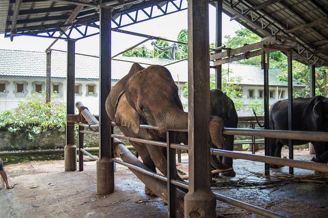 斯里兰卡有很多大象孤儿院,但是都是为了吸引游客的,正规的只有品纳维拉这家大象孤儿院,这里也是我了却念想的一个地方。因为曾经翻译过一篇关于大象孤儿院的文章,所以对这里有了情感,据说1975年斯里兰卡建造了世界上第一个大象孤儿院,也是目前世界上存在两所大象孤儿院之一,另一个在肯尼亚。这里主要是收养无家可归的、陷阱受重伤、脱离群体迷途、因战火负伤及患病的幼象,孤儿院也会游人开放,门票用作孤儿院的日常经费。