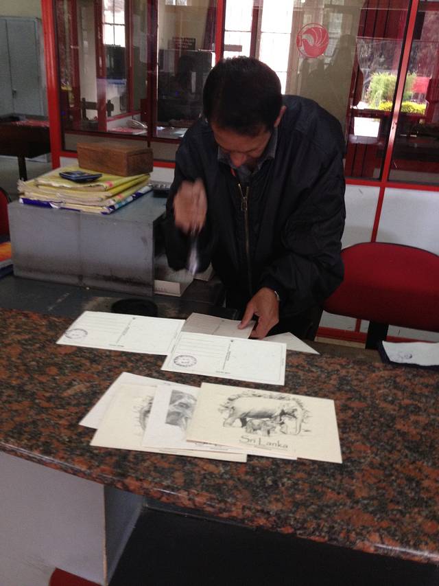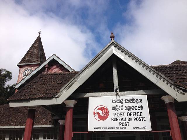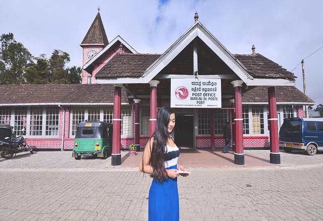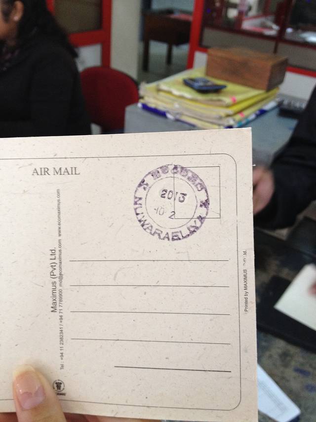 路过努瓦利耶不知道什么名字的湖,天一直都阴阴的,离开这里之前我们去了努瓦利耶的中央邮局,被称为最美的邮局,小英伦风,我在这里买了点邮票,还给我在大象孤儿院买的大象便便明信片盖了戳戳,留作纪念,邮局的工作人员很热情,特别热心的帮我盖戳戳。