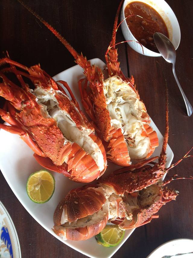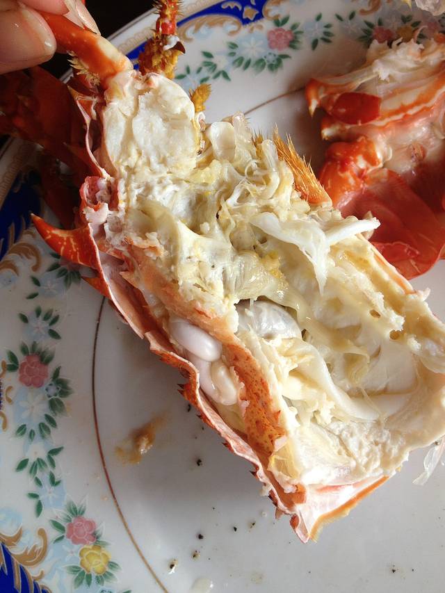 大龙虾做好了!超级美味,白水煮配上秘制酱汁,女主人还给我们买了可乐,我俩狼吞虎咽吃的时候女主人就笑笑的在旁边看着我们,非常满足的样子,我们一个劲儿的夸龙虾好吃,她就笑的更开心了。家里的猫咪明显一副:“看你们没见过世面的样子,我可是天天吃呢。”是啊,就是没见过,这么新鲜的龙虾和人民币75一只,当然开心了。