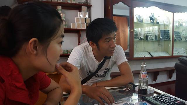 我们在店里认认真真的挑石头,陶先生对彩宝略有研究,经过数天来的比较和讨价还价,有一些些小收获,几颗托帕、一个黄水晶戒指+吊坠、红石榴石戒指等一些小彩宝。。。本来陶先生是打算给我买一个蓝宝石当做生日礼物的,在付款的最后一分钟我反悔了,最终没有买蓝宝石,主要是觉得水太深、道行太浅,不如买一些百十块钱的彩宝,也买不到吃亏也买不了上当,而且说句心里话,我一直没有看到一见钟情的,在我心里对钻石或者蓝宝都有一种执念,要的是一见钟情绝非日久生情,至于什么是一见钟情我可能不见到永远不知道。