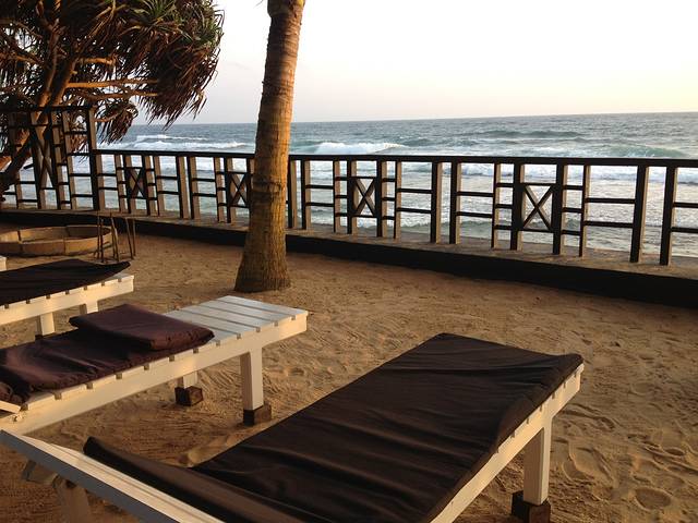 个人评价:地中海的蓝白风格,自带沙滩、躺椅、吊床,房间有一个漂亮的阳台,住的很舒服!Unawatuna距离Galle加勒很近,加勒古城区也是风景区,里面的住宿南面贵些。