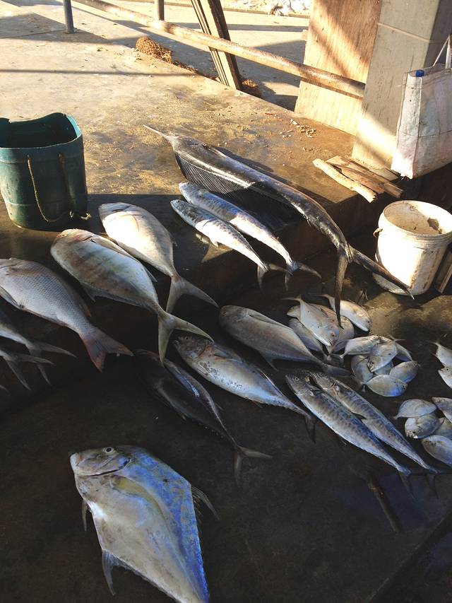 出了教堂到中午了,我们特别想去鱼市场看看,可是在哪儿呢?热情的斯里兰卡人民看见踌躇满志的我们,就过来指路,可是不知道是什么口音的英语我真是听不懂啊。这时候我又充分发挥了鼻子的价值,闻呗,我跟陶先生说鱼市场肯定特别腥,咱们先骑着小摩托往前走,闻到特别腥的味道就拐进去。。。
