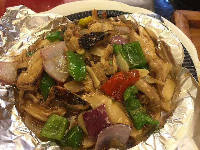 铁板松茸,爽嫩至极,美味与营养兼顾。当地人说此时正是吃菌的季节。