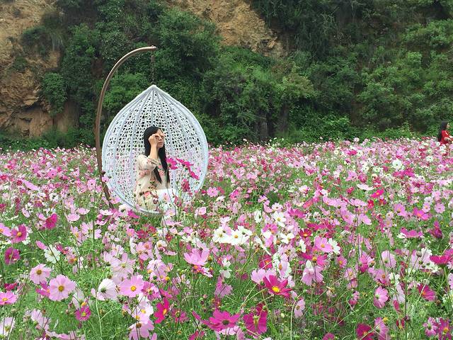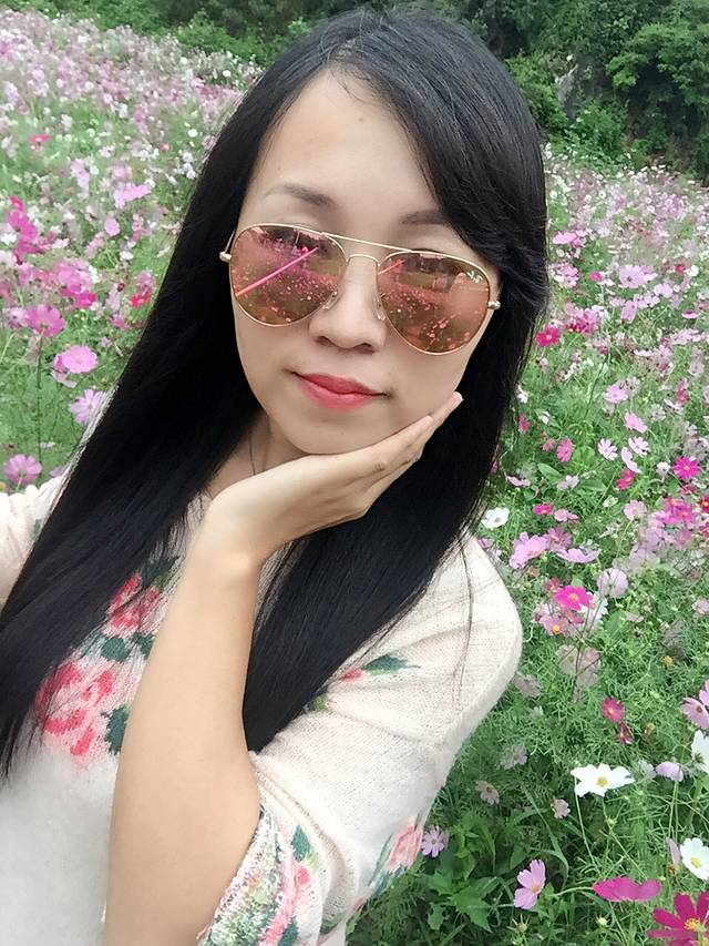 姐今天穿的花毛衣、粉眼镜,都很衬这片花海,是不是