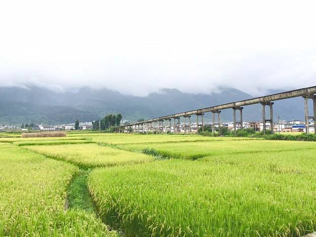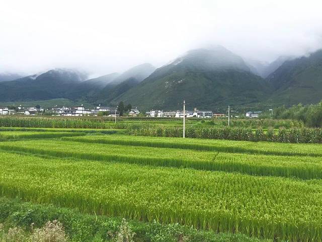 在下一站去双廊的路上,偶遇一片金黄的稻田,苍山环绕着村庄,村庄环绕着稻田。大赞。