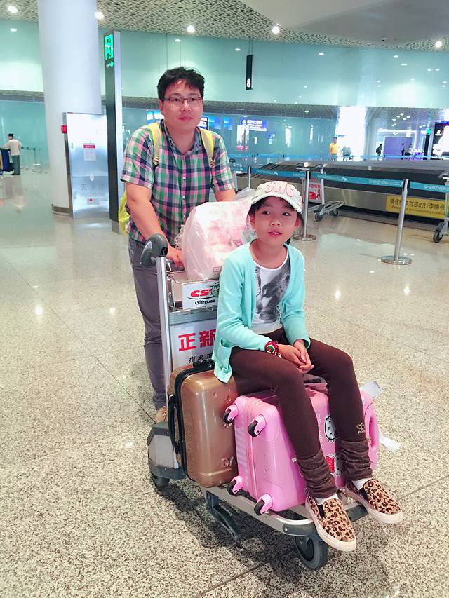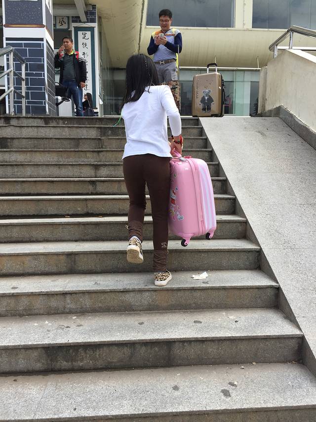 出发前,宝贝儿承诺全程对自己的行李箱负责。我们夫妻俩也很配合她的决定!大家看看上图站在台阶上悠闲玩手机的某哥就相信了吧!虽然我也很赞成,可看到此图,还是有点虐待儿童的犯罪感!这应该也是带小朋友踏上旅途的意义之一吧!