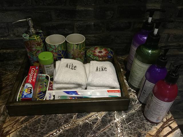 洗浴用品全都是高端品牌。连漱口杯让人爱不释手。