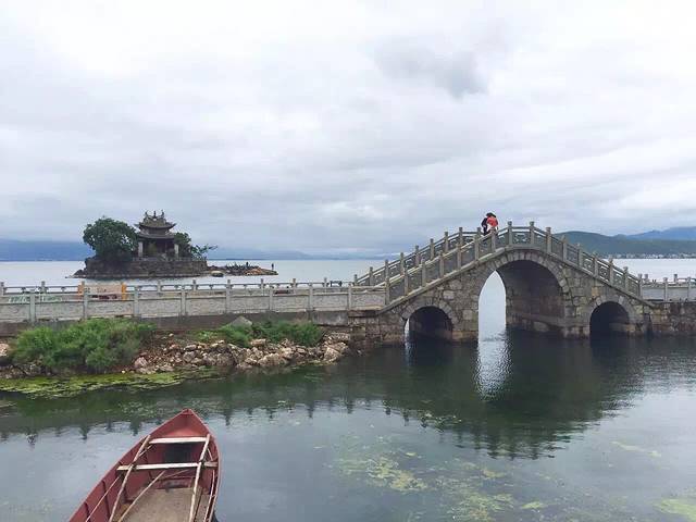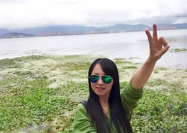 小女生对这如画布般的浮萍很感兴趣。一路环湿地的栈道,小路修得很精致,洱海的治理确实下了一番功夫
