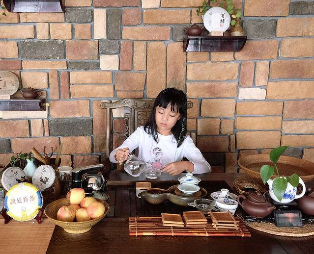 小女生在一楼休闲吧卖弄起了茶艺,像模像样。