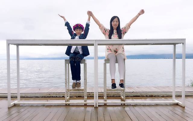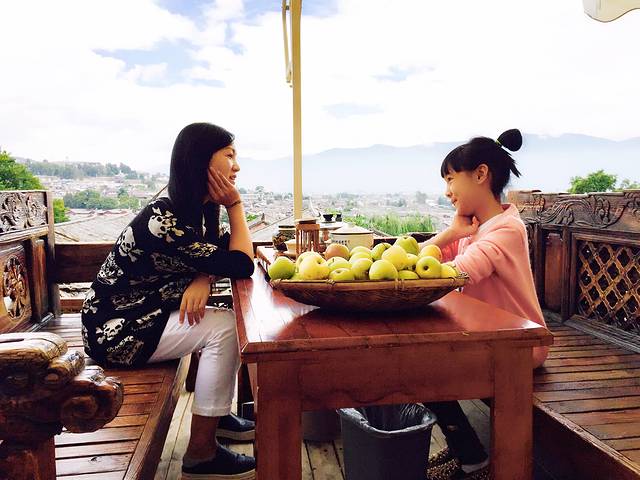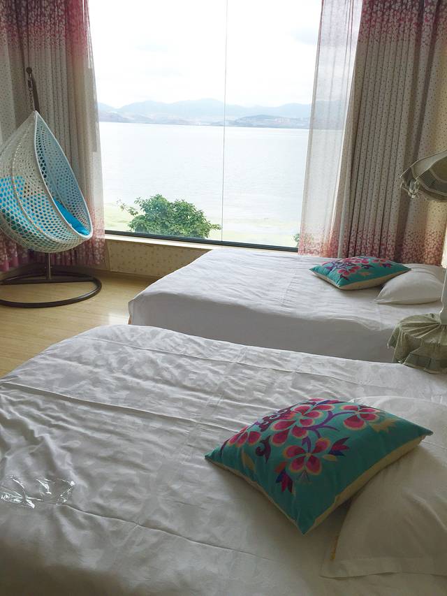 在大理住两晚,去哪儿网上订的聆心畔海客栈,正宗的观景房,一晚三楼的田园180度观景,一晚四楼的东南亚270度观景(观日出最佳方位,一楼层一间,当然房价也美丽许多)。做攻略时姐无时无刻不想着三个字:性价比!酒店都要订不差的,但不同房型价格差异大呀,但凡要起早床出门去玩儿的,姐绝不订豪华观景套房,只要床品舒服就好。但凡可以睡懒觉的,第二天有在屋里观日出、赏景、喝茶、看书、刷屏、发呆计划的,一定是观景大套房,这样才值回票价,姐是不是有点抠啊!躺在床上看一望无际的洱海,看云巻云舒。最重要是满足了小女生的特殊要求:屋内落地窗边要有休闲吊椅!这年头,当妈的必须三头六臂!