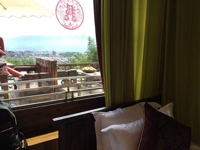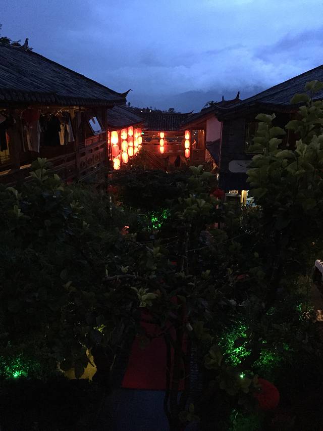到丽江后,已经是黄昏时分,天下起来䑃朦细雨,照说雨天会影响游玩的心情,可能因为有他和她的陪伴,心情出奇的好。在去哪儿网上订的真美狮子山观景店,老板人特好,我们下飞机刚开机,客栈接机师傅的电话就进来了,我们和我们的行李十分快捷地上了车,大概四十分钟就到了客栈。为了俯看丽江古城全貌,我订了山上的观景店,看着师傅们扛着行李箱上石板台阶的背影,一阵感动,心底的温暖驱散了雨雾带来的寒意。因为后面三天订了玉龙雪山和香格里拉的行程,所以前面在丽江的两晚订的真美家的家庭套间,奔四的我依然是一名不折不扣的经济适用女,不该花的钱一分也不能浪费,这点旁边的老公可以作证!后面回深圳的前两晚订的他们家三楼的观景套间A户型,室内和阳台观景都是一极棒,A户型推荐给各位亲!小贵,但值,咱该花的钱还是得花!哈哈,某哥要被我搞神经了,哈哈哈