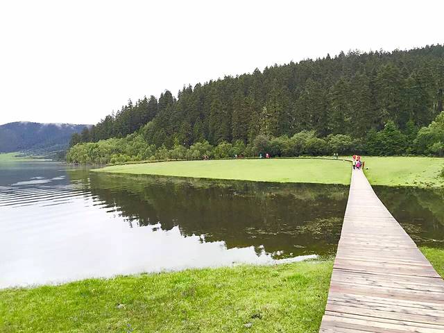 实木栈道连接着湖泊、草甸、青山,弯曲起伏,看不到尽头,慢慢伸入到游人柔软的内心……