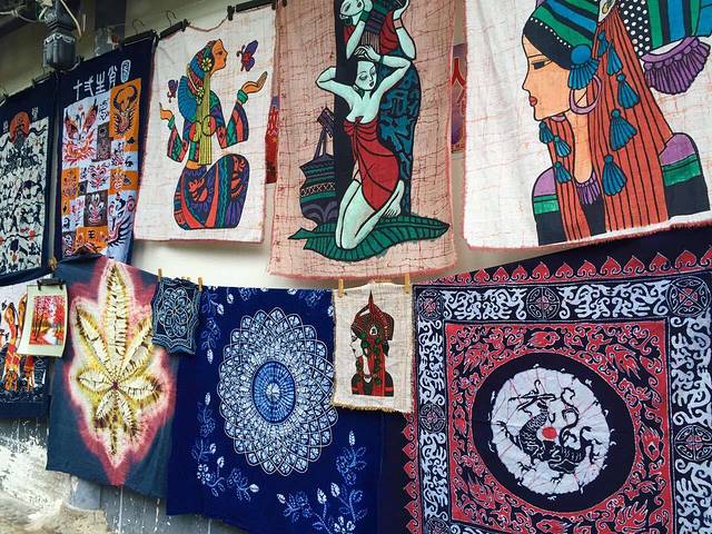 一直以来毫无道理地迷恋扎染,丽江大研古城只有零星的小门店。网上说大理古城有正宗的扎染作坊,所以此次逛大理古城就奔着这个,大街小巷地摸,终于找到一家制作染布的作坊,激动啊。。。