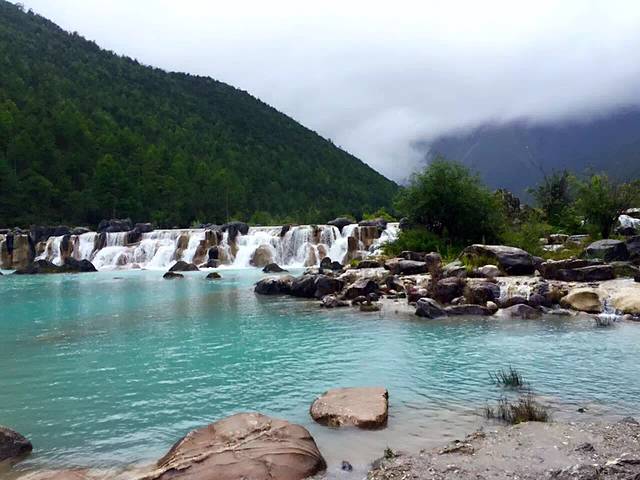 山顶游览完毕,又坐大索道回到山脚。进入第二个景点:蓝月谷。十年前还真不知道雪山脚下有这么个美丽的地方。初进蓝月谷,恍如隔世,感觉自己进了九寨沟。因为含有丰富矿物质的雪水汇聚,一片又一片的湖泊呈现天然的蓝色,加之青山的映衬,美不胜收!