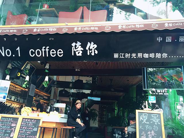 COFFEE陪你,应该是观景角度最棒的一家,360度看古城,绝对无死角。只是我们进去的时间不对,观景区完全被太阳斜斜地照着,大大的太阳伞完全不起作用,太热了。只有退出了。建议亲们下午去它们家赏景喝茶,5星推荐。