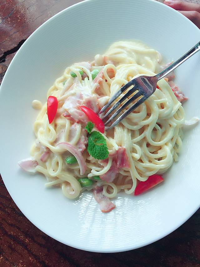 酒店位置较偏远,但舒适,出门临海,旁边有一条食街。这是我们的午餐,味道很赞,关键消费还低,大理真好