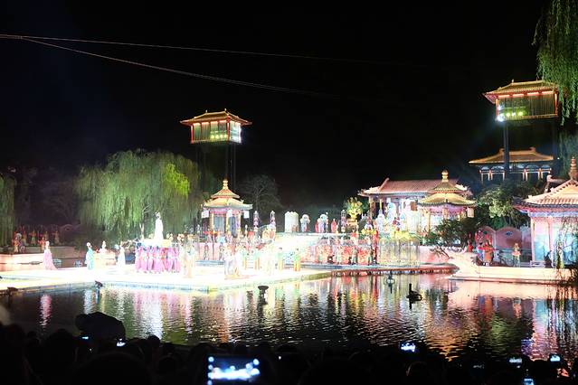 长恨歌,值得一看,不过坐在西区还是不好,最好还是能够买到中区的票。200+一张票,第二场了人超级多,基本上都是满座,还有站着的,男女分开安检,女的进场必须被翻包,挺奇葩的。不过只有旺季才有表演,展现了盛唐时期唐玄宗和杨贵妃的美好爱情故事。