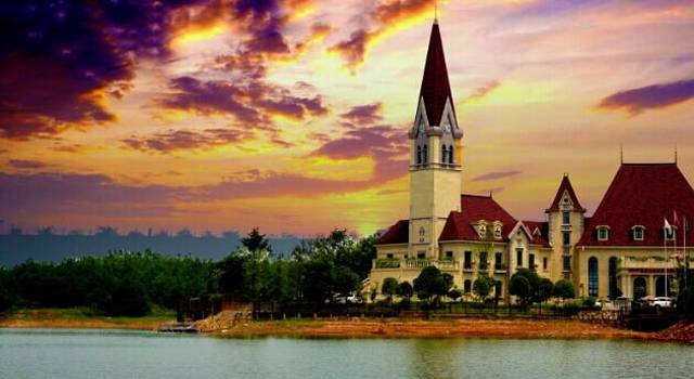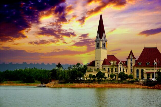 晚上下榻的就是这家欧式风情的酒店,打开窗即可看到整个湖面。据说有一千八百多亩。