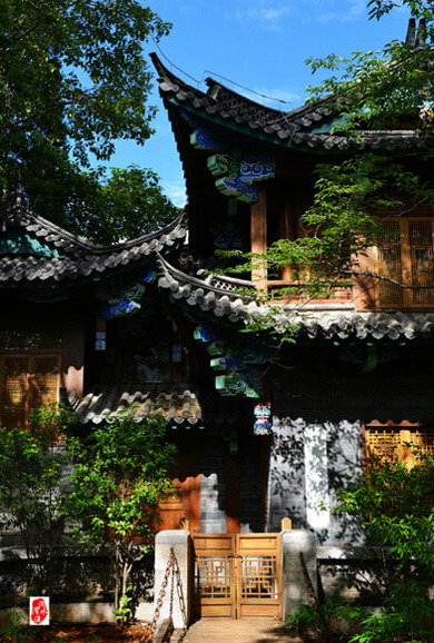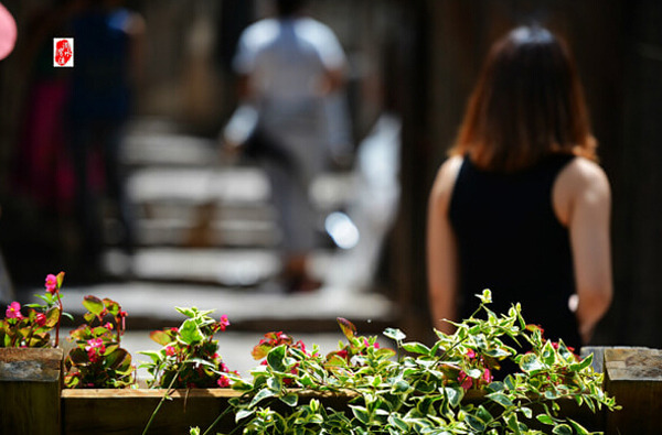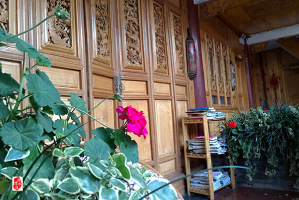 古宅偏安,宁静居奇。砖墙,木构,鲜花,天井。古朴适意,心生欢喜。