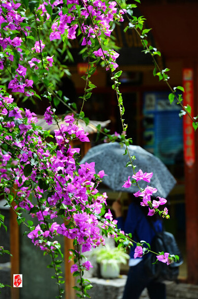 清晨,抵丽江。天空下着小雨。打车,如古城。