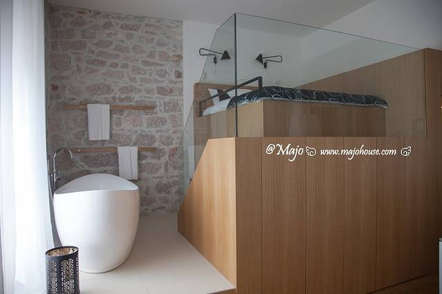 房间内大窗旁边的大浴缸非常高级啊!不过我们都没有用就是了。跃层的卧室不但看起来很现代,有层次的空间感还让有限的面积变得感觉更宽敞。 房顶非常高,所以大窗户也非常宽广,基本上一面墙全部都是窗户。白天屋内光线非常明亮,晚上拉上窗帘就完全黑下来,一点不影响睡眠。