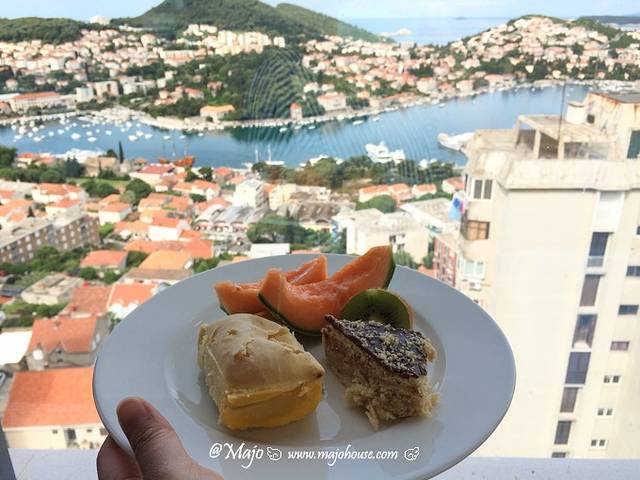 民宿在旧城南侧的山坡上,需要拐几个弯才能抵达。地理位置大约半山腰,但也就是因为如此,景色才更加无敌。 一栋大概三层楼的大别墅,大门与车库在最顶层,还有一个小露台花园。中间那层被装修成民宿。两套客房有无敌的窗景!最下面那一层,是主人Anka自住的。阿姨人非常nice, 会告诉我们用过的餐具不要洗,因为我们是on vacation. 有一天中午,还开车送我们去旧城玩。