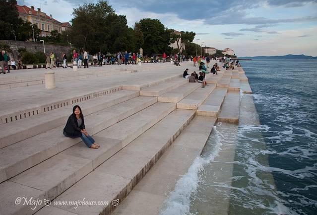 每天傍晚,海风琴这里会聚集了人群,大家都坐在琴键上等待日落。 住在Zadar的两天,每天晚上我们都有过来这里转一下。最后要离开前的那一天,更是坐在这边两个多小时。就是坐在那边慢慢的休息,悠闲的跟路上一直偶遇的马来西亚华侨聊天,跟当地人一起慢慢等待夕阳西下。
