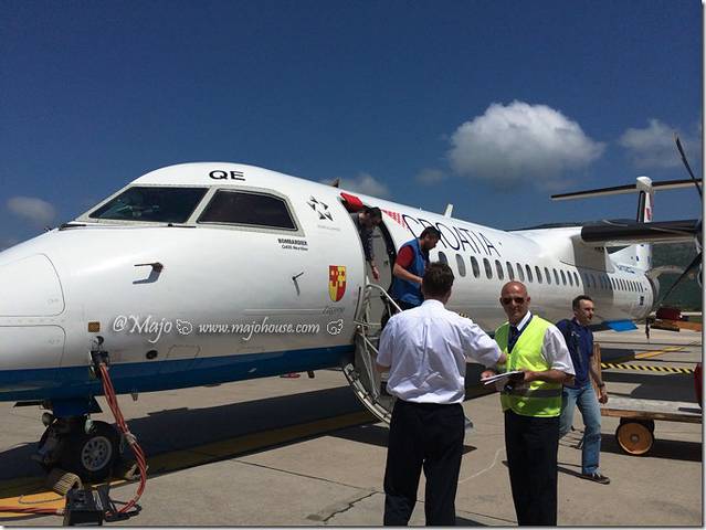 从Zagreb飞往Dubrovnik, 飞行时间55分钟,算一个小时好了。一天因为会跑个十几趟,所以飞机都是用的小螺旋桨飞机,但飞的还是很平稳嘀。 起初我在飞机上,舒服的又被搞睡着了。待我清醒一些的时候,我们已经快要抵达目的地了。