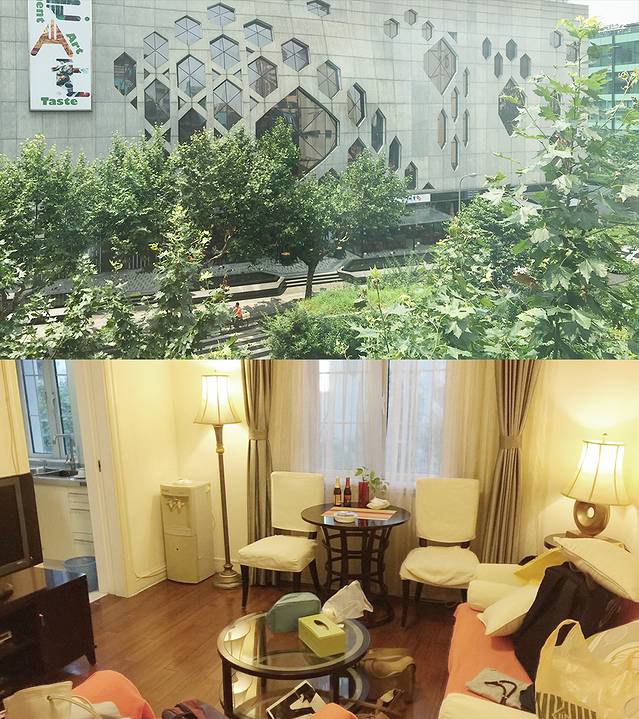 于是我们选择了【上海国际丽都公馆酒店式服务公寓】,这就有点像我们在青岛第一天住那个地方,可以做饭的。但是高出了很多level,此公寓不但有独立厨房,还有客厅,卧室,卫生间。更NB的是,位置及其的好,在静安,对面就是1788广场(过马路就是magnet,后面会提到),而且我们到的时候酒店有活动,原价基础上直接升大房,面积更大了,反正住在这里体验是及其的好,楼下就是各种高端高b格还有便利店,走100米就是上海高端歌厅百乐门。(情深深雨蒙蒙,多少楼台烟雨中...)