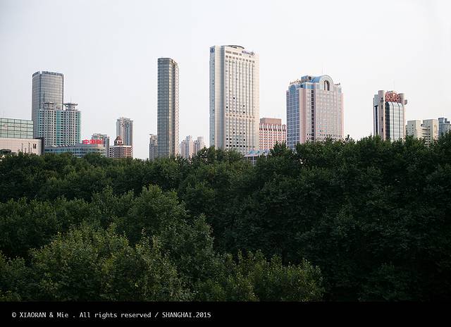 抹完药以后,司机叔叔把我们安全送达了【芮欧百货】,听说这个楼顶是卖设计小物的,于是早就打算来看看(实际上看完以后还是感觉可能楼下的MUJI更有意思,有北京没有的产品),上来以后发现店铺并没有开齐全,还有好多没有开,卖的也基本都是小物件,好在它有个天台可以俯瞰静安公园(实际是静安公园的森林),以及静安寺,就出去溜了一圈,感觉小天台还是不错的。可以看到如上图的景色,自然和城市的结合,我喜欢。