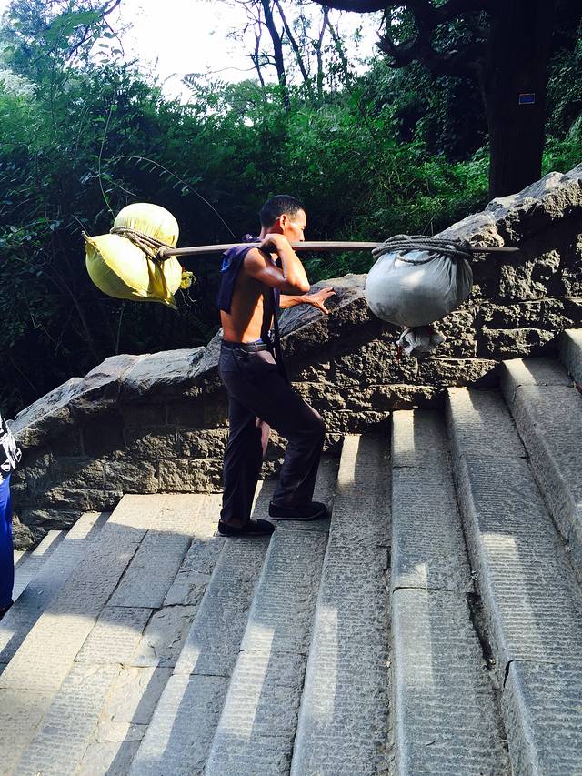 路遇挑山工,自己被一个背包已经喝斥带喘的了,看见人家这么辛苦的负重上山,真的觉得东西贵一点也是合理的,每次也只有这么少的东西而已