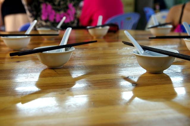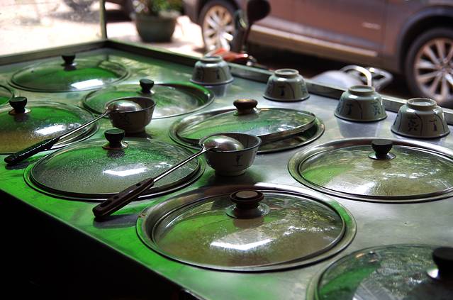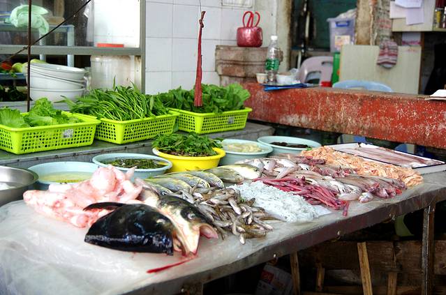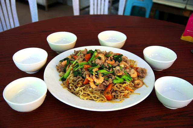 幸好我们有美女导游Gloria这个当地人为我们点菜,只见她和老板娘叽叽咕咕几句,不一会儿,我们的菜就满满地铺一桌。