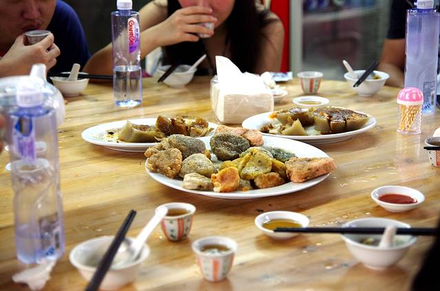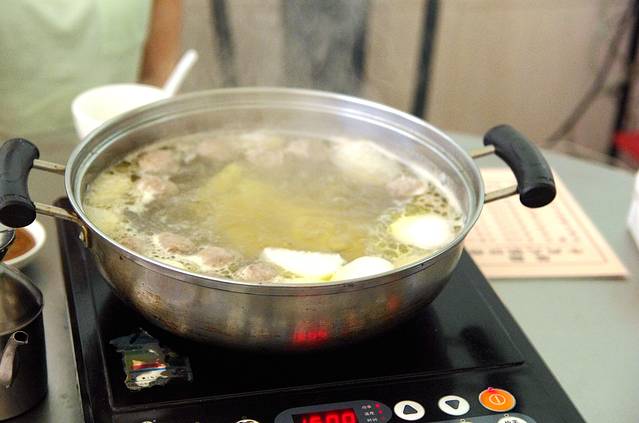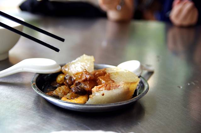 加入卤汁的汤底,里面包含着粿条之外,,卤蛋、豆腐、猪肠、等也是不可或缺的。