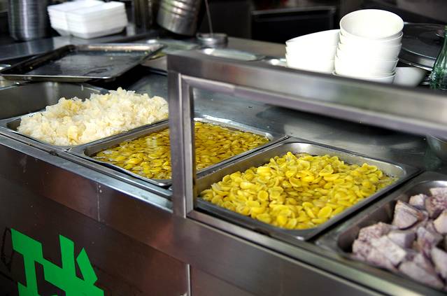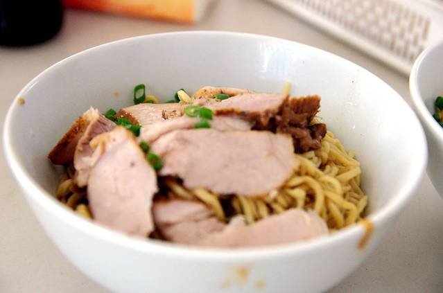 为了严格遵循吃得更多、吃得更饱、吃得更好的吃货精神,我们六个人只点了两份干面。每份干面都会配上一碗猪杂汤,价格为20元。