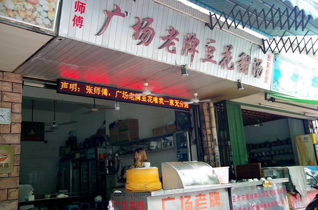 大伙儿步行回新华酒店后,猛地想起久负盛名的【广场豆花甜汤】还没有吃到。于是又马不停蹄地前往第十三站广场豆花甜汤。