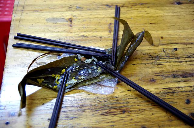 于是当我们一行5人进入第八站【老妈宫粽球】并告诉老板我们几个人只要1个粽球但要5双筷子的时候,我似乎看到老板的额头冒汗。