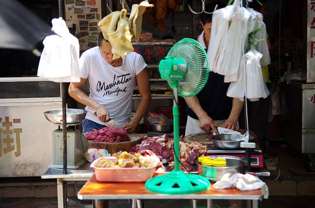 金新牛肉位于金砂公园附近,来到小店面前就被震住了!各种各样、各种部位的牛肉一整块散发着牛肉独有的鲜味赤裸裸地躺在门前的砧板桌上。可以说与牛有关的各类美食,被诠释得淋漓尽致,一头牛各个部位都被物尽其用。