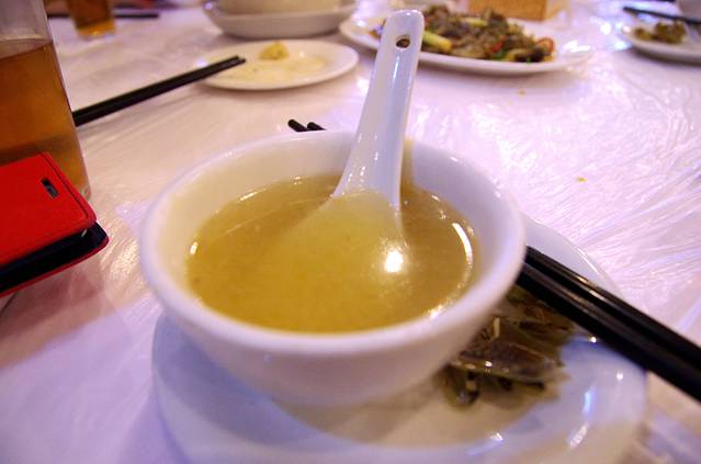 登场的第三道菜是笋汤。笋的味道很新鲜,所以汤头喝起来有一种清新淡雅的感觉。团友晴天估计是太饿的原因,居然连吃了2大块煲汤后的猪肉。不过其实这是一个非常吃亏的行为,因为好戏在后头。