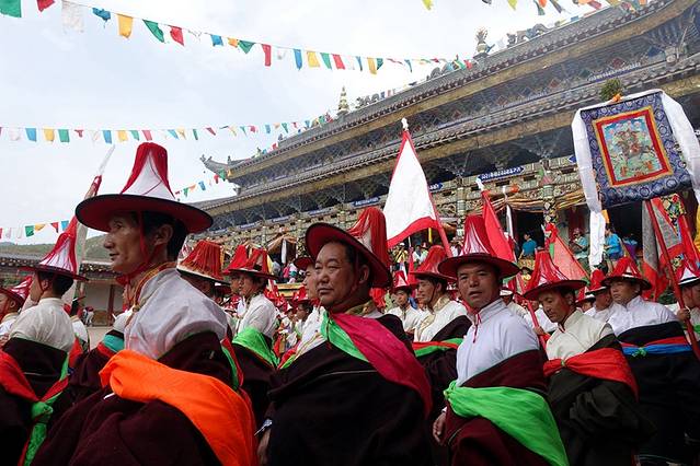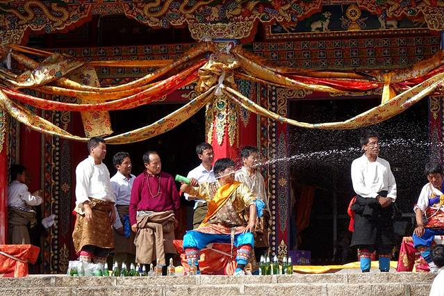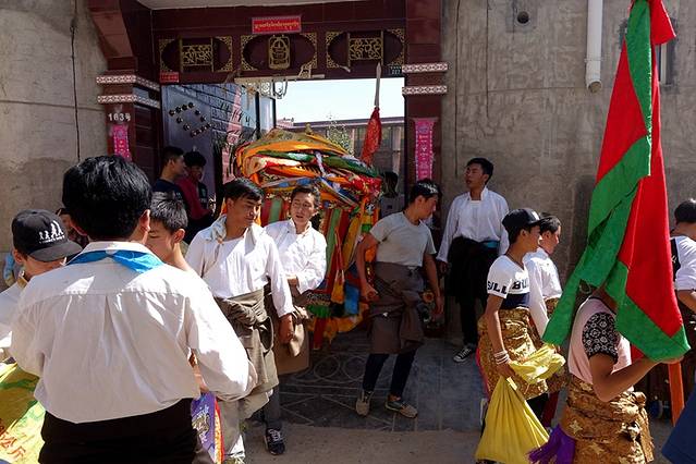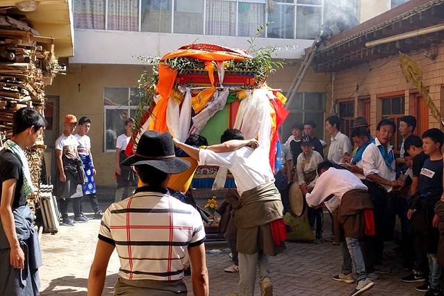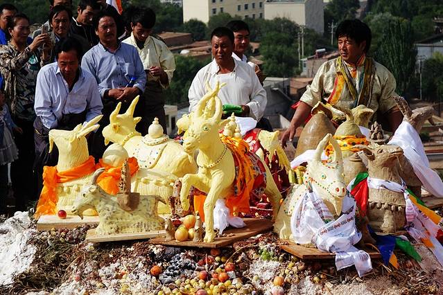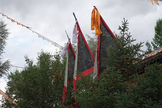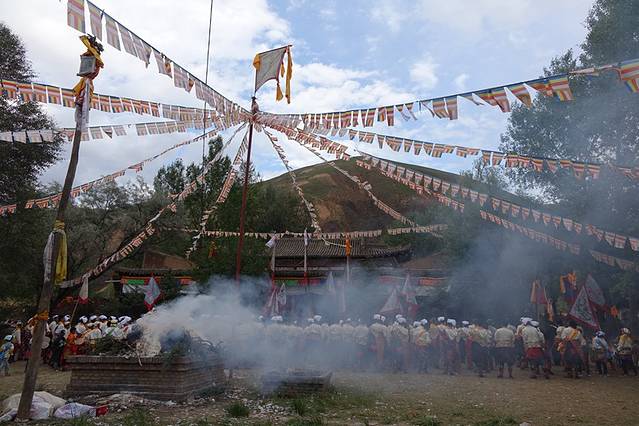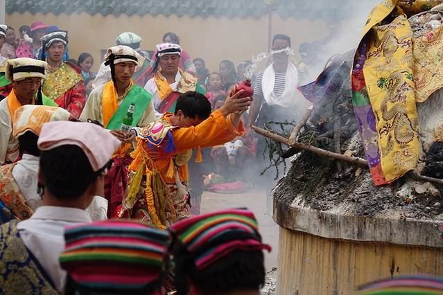 1、羊祭。因该仪式与藏传佛教格鲁派教义相悖,由于寺院活佛的极力反对杀生,改用糌粑酥油塑成羊形置入桑火中祭祀。