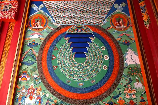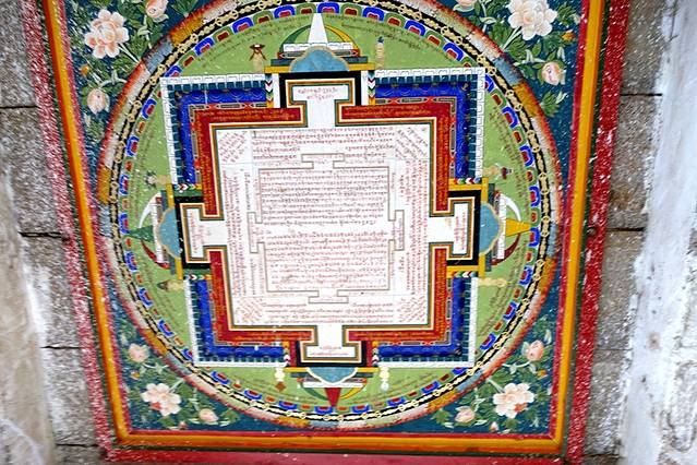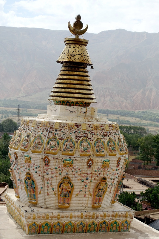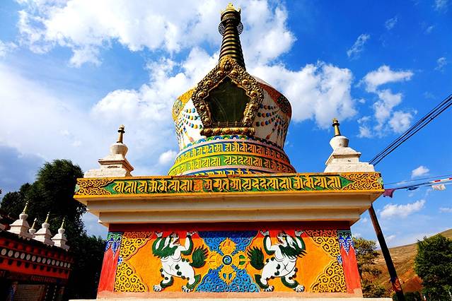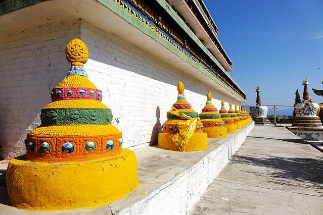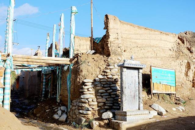 塔基周围环绕藏式平顶小屋,内置嘛呢经轮